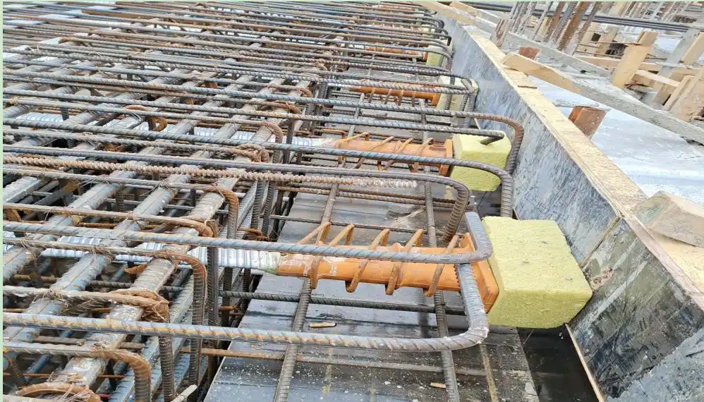 Bonded prestressed tendons typically use 6m-long corrugated ducts, field-spliced with 300mm overlaps. Specialized couplers may reduce overlap to 200mm.